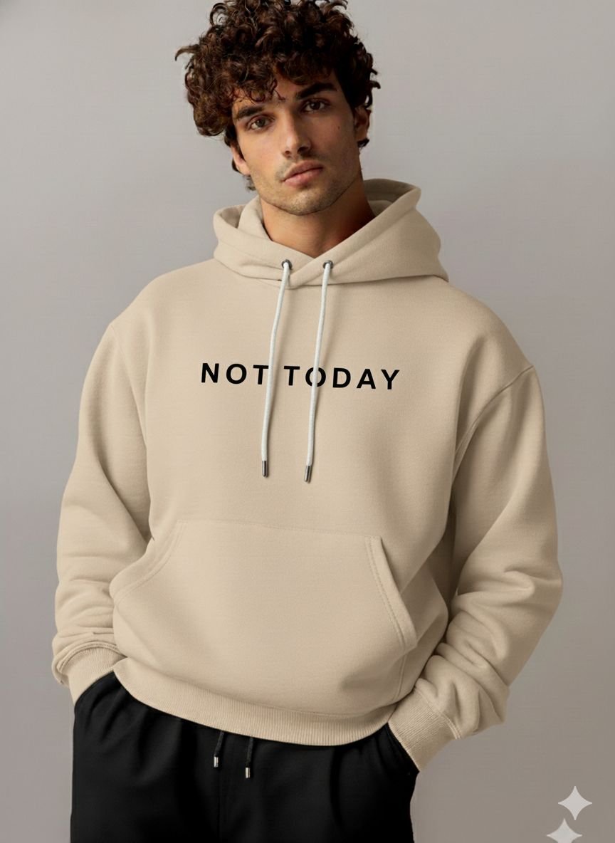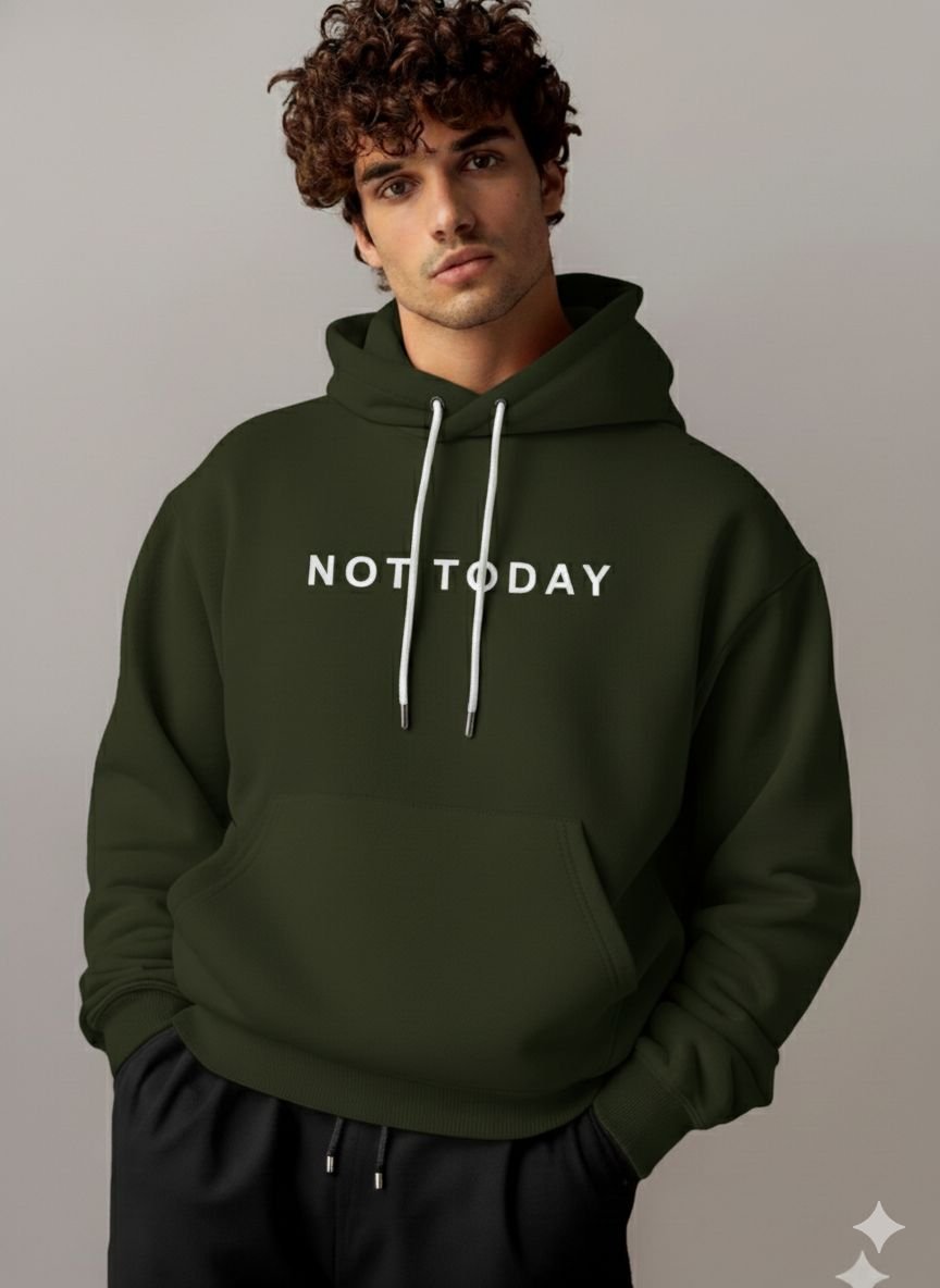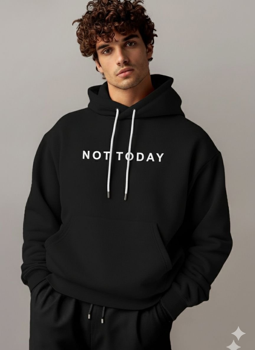Stay warm and stylish with this premium cotton “Not Today” printed hoodie. Designed for everyday comfort, it features a soft inner lining, adjustable drawstrings, and a roomy kangaroo pocket. Perfect for casual wear, streetwear styling, or winter layering.